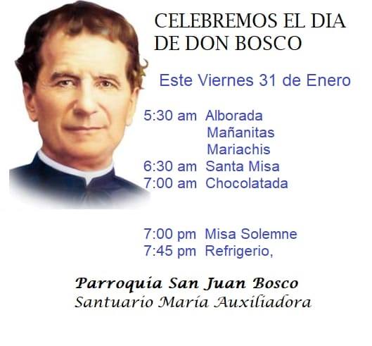 31 de Enero – Día de Don Bosco Comparte esto:Haz clic para compartir en Twitter (Se abre en una ventana nueva)Haz clic para compartir en Facebook (Se abre en una ventana nueva)Haz clic para compartir en WhatsApp (Se abre en una ventana nueva) Navegación de entradasAnterior: Acompáñanos en nuestro 40 AniversarioSiguiente: Consuelo, en la Pérdidad